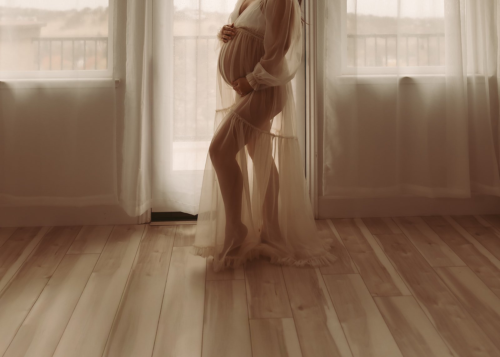 My client closet includes a curated selection of flowing gowns and wraps chosen with maternity sessions in mind, so you can arrive, get dressed, and feel genuinely beautiful from the moment we begin.