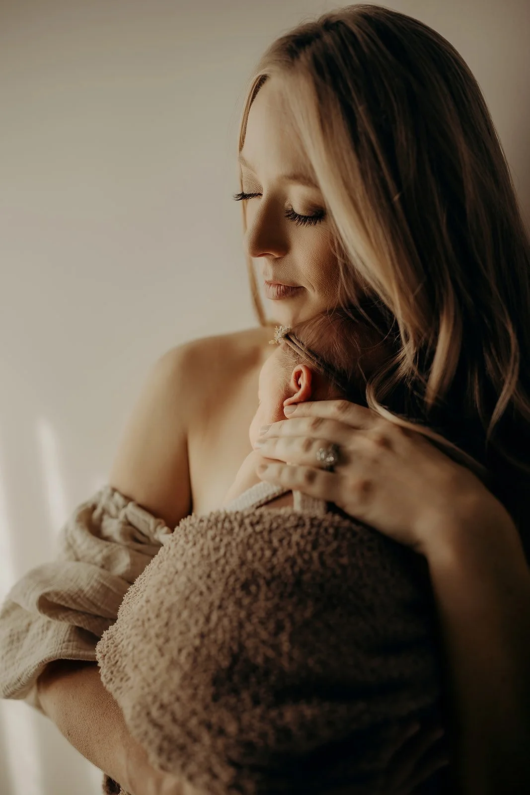 The studio is stocked with soft wraps, organic textures, and simple props that honor just how tiny and tender these earliest moments truly are. My client closet is also available to you, with a selection of pieces for both mama and baby.